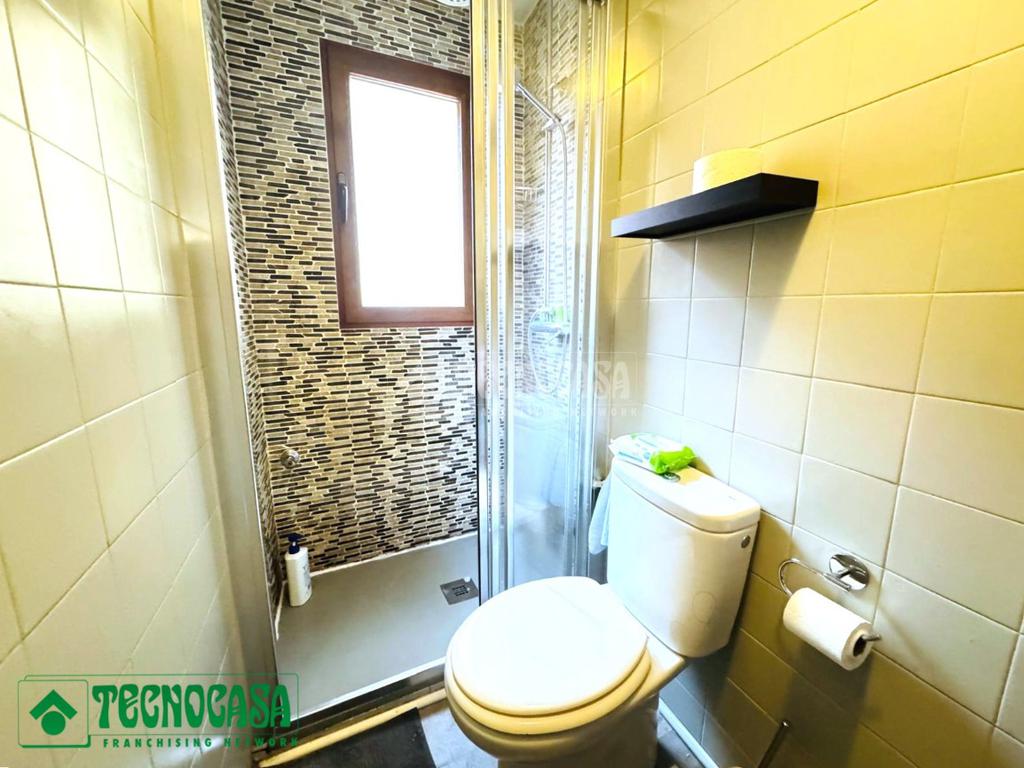 - Baño completo con plato de ducha y ventana.